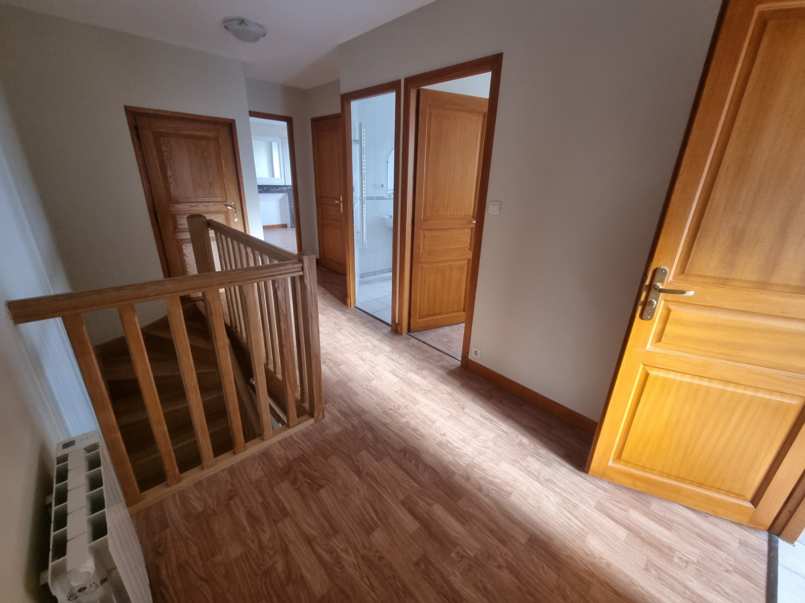 MANINGHEN HENNE, libre au 1er février 2026 possible avant, maison lumineuse et spacieuse offrant en RDC : hall d'entrée avec WC et accès cave ; salon/séjour (20 m2), grande cuisine séparée aménagée semi-équipée (20 m2) - A l'étage : palier desservant 3 chambres (18, 11.5 et 9.5 m2 en loi Carrez), WC et 2 salles d'eau