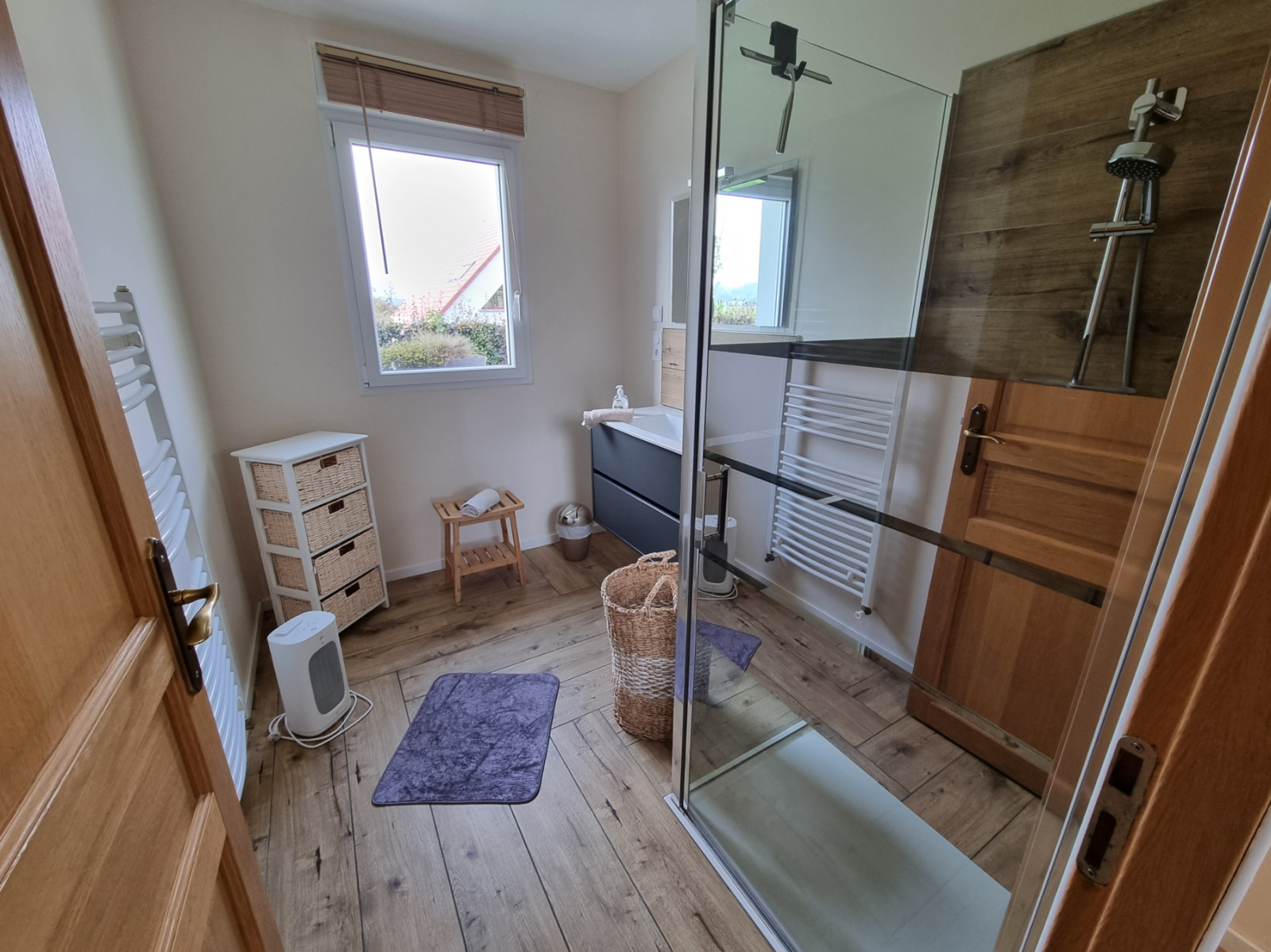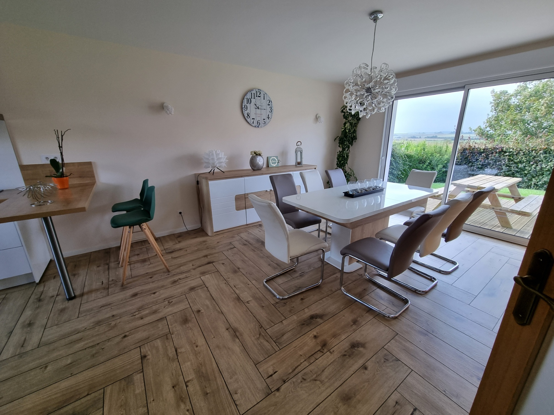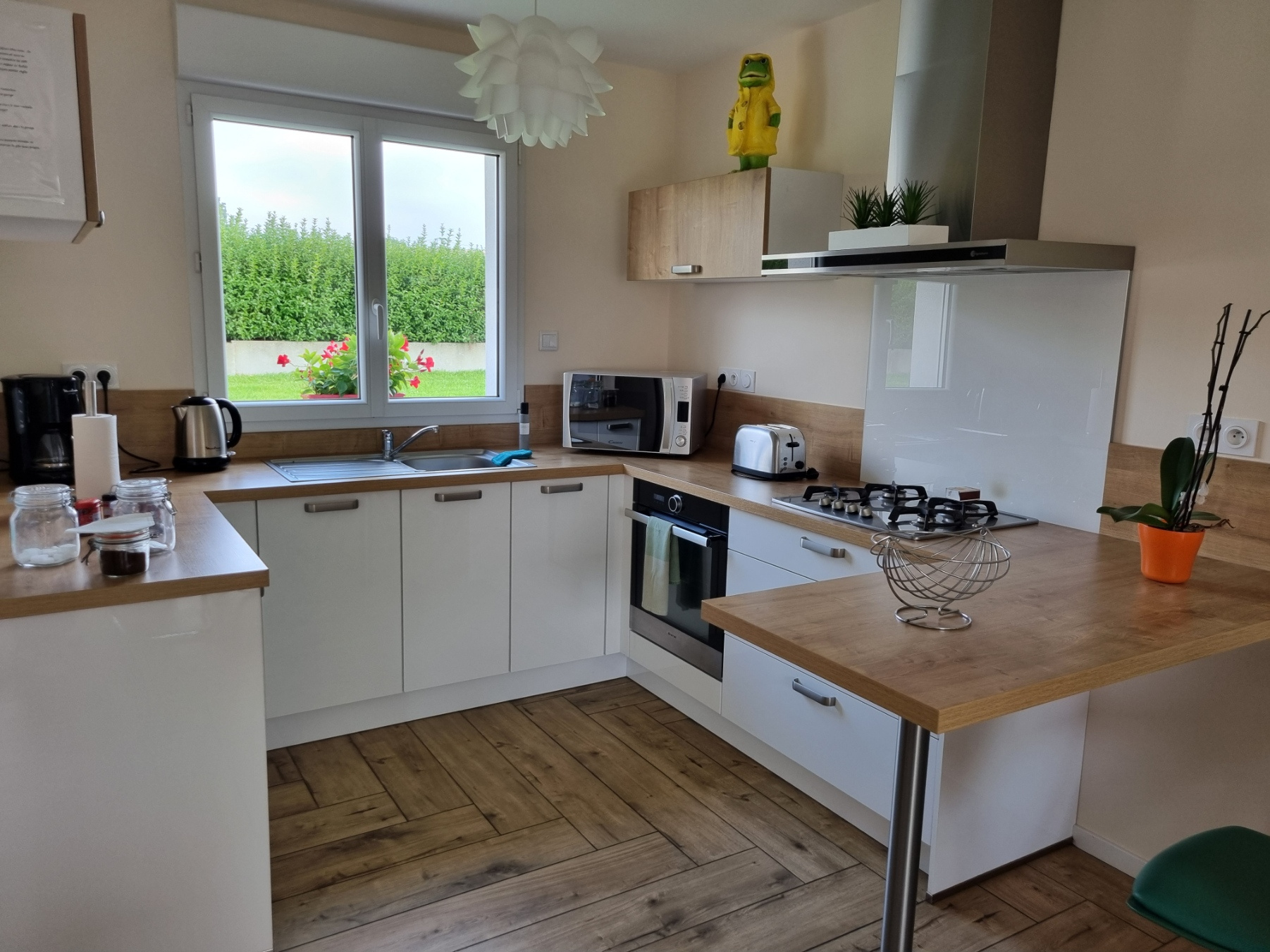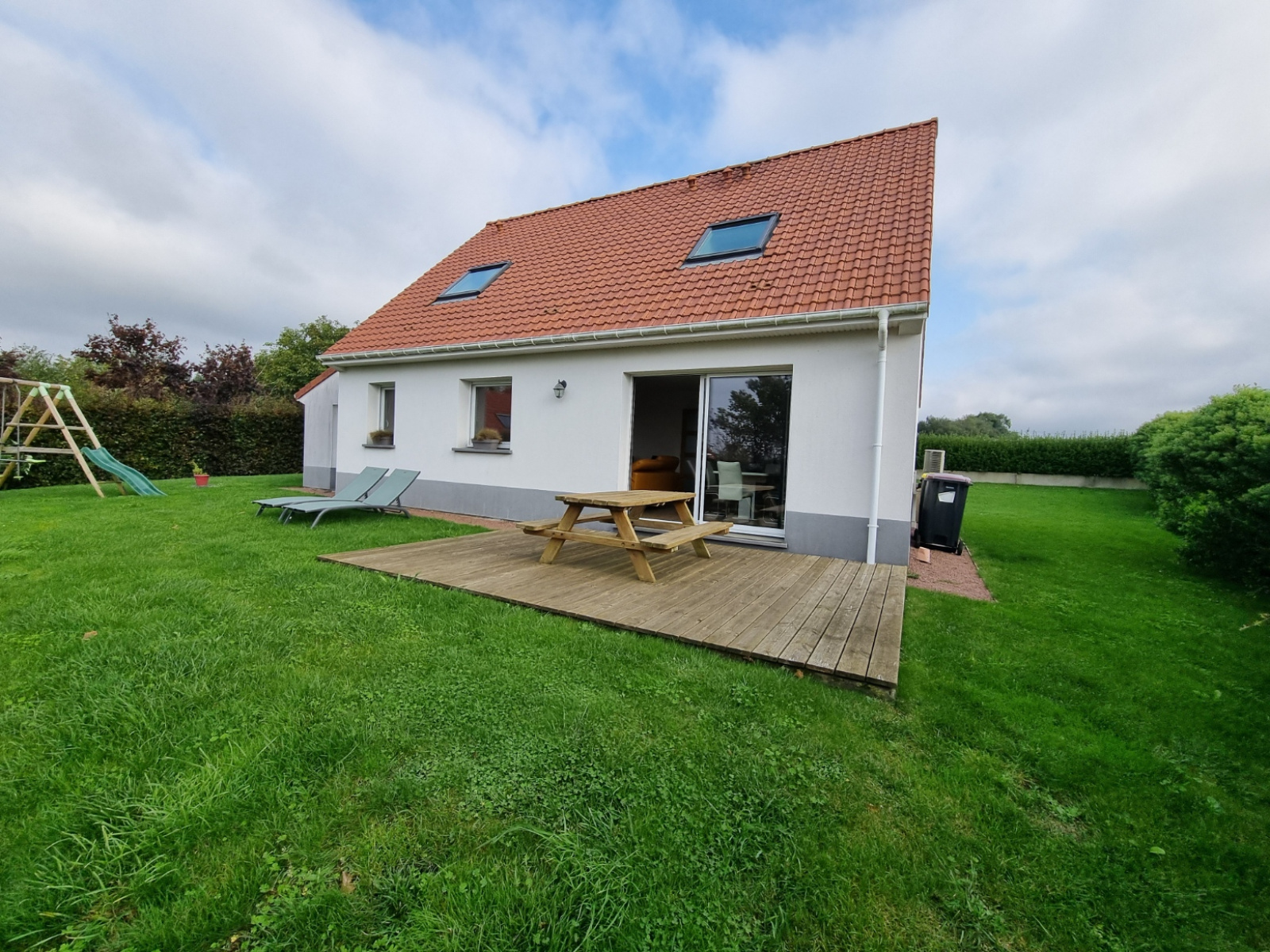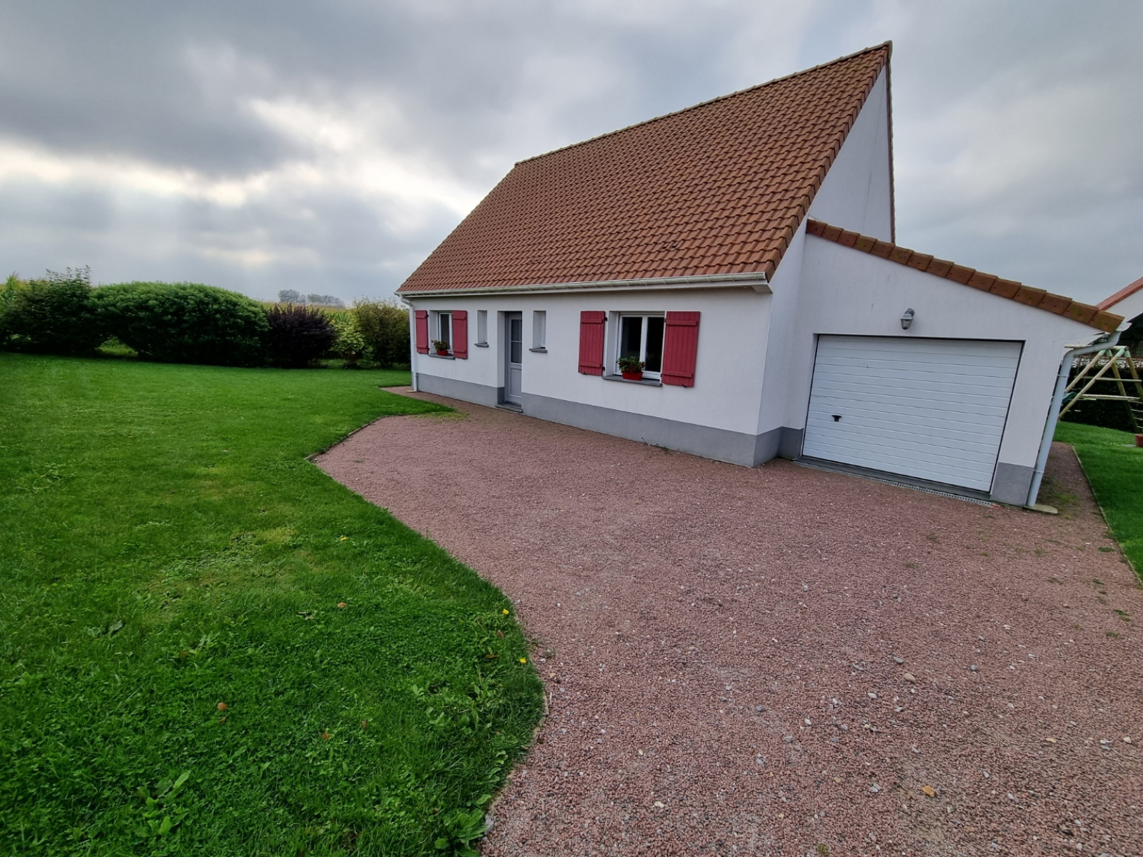 BAZINGHEN, bail dérogatoire de 6 mois à compter du 15 octobre 2025, très jolie maison récente de 120 m2 offrant hall d'entrée avec WC, salon/séjour lumineux avec cuisine américaine, chambre, salle d'eau, garage attenant avec espace laverie