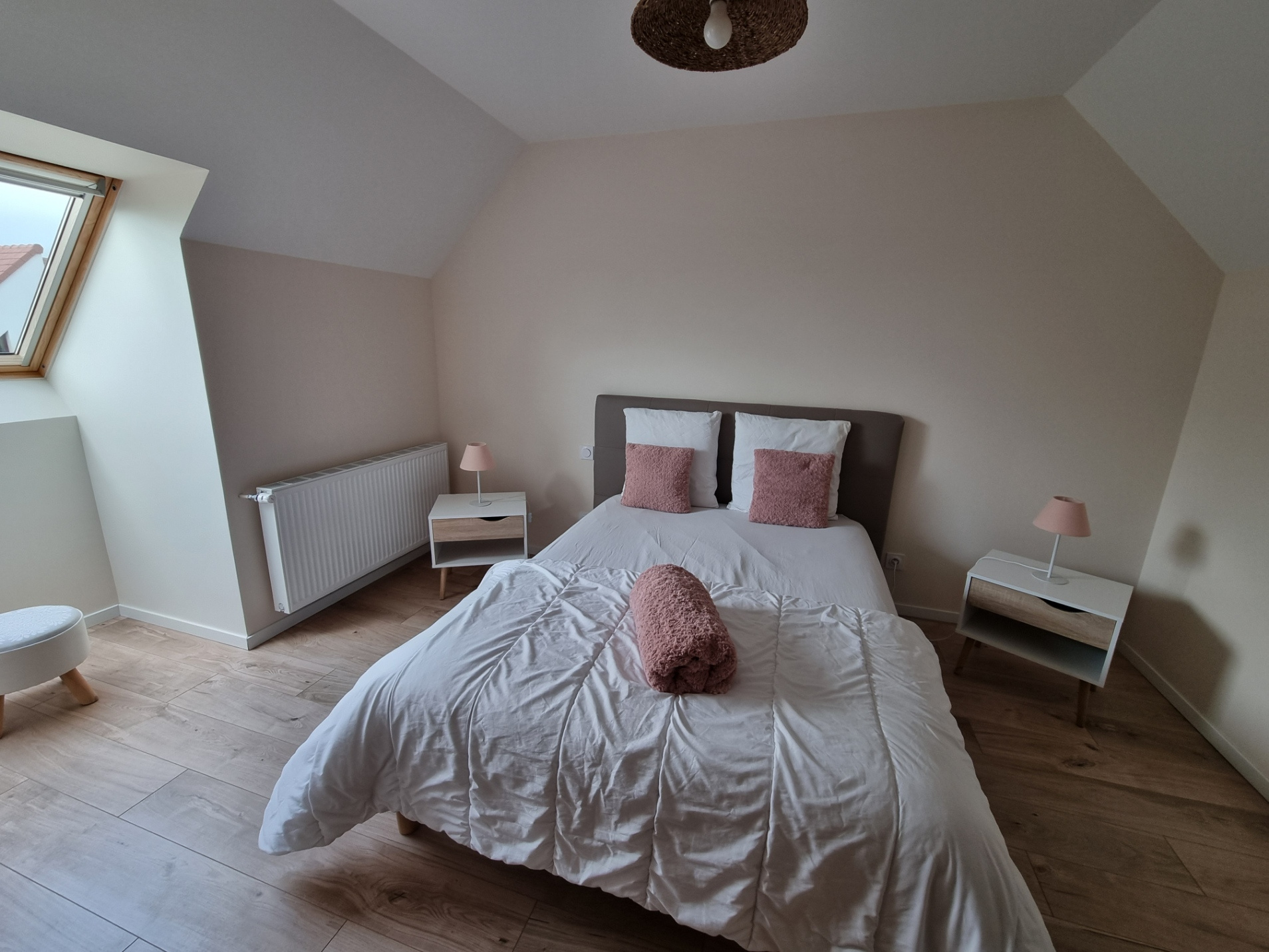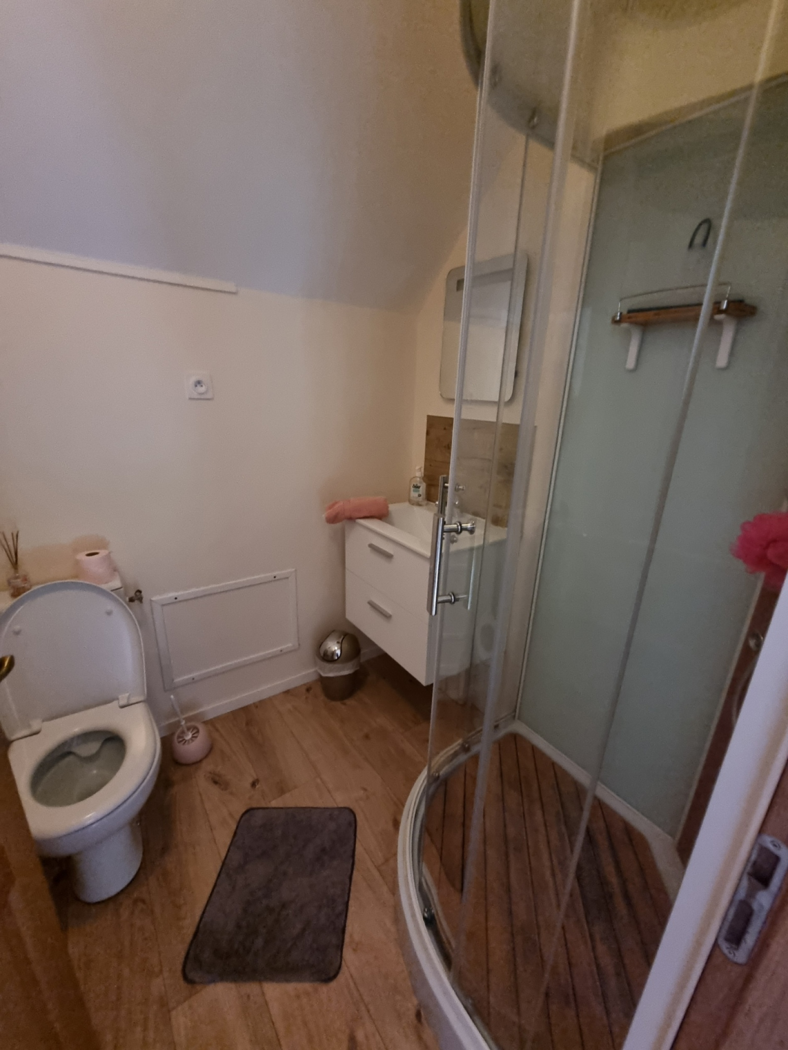 étage : palier desservant 2 grandes chambres, salle d'eau avec WC - Chauffage par PAC - facilités de stationnement