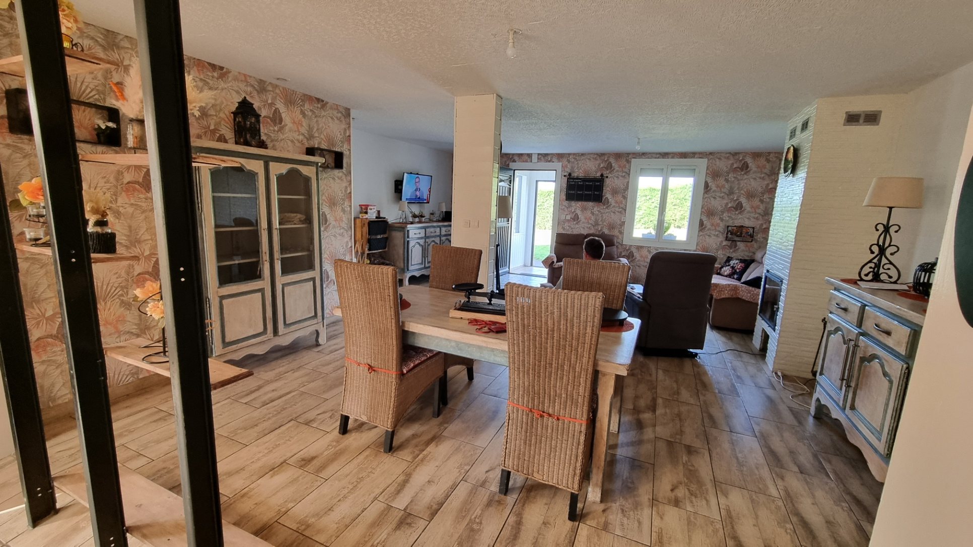 RDC qui sera libre d'occupation à la vente : appartement type T4 offrant 96 m2 habitables - Sas d'entrée, salon/séjour de belle contenance avec insert bois, cuisine meublée ouverte, couloir avec placard de rangement menant à la salle de bain avec WC et 3 chambres dont deux avec placards/dressings intégrés - 2 appentis en bois - Jardin privatif avec grand chalet en bois sans vis à vis