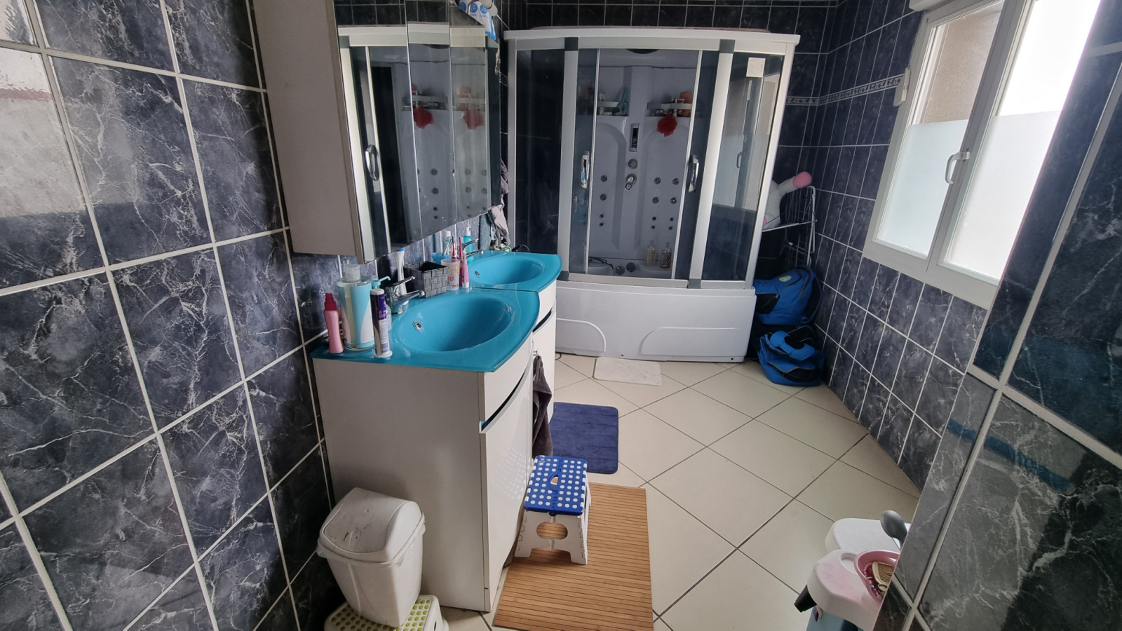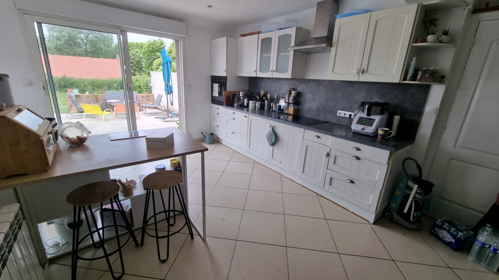 RETY, maison mitoyenne de 122 m2 habitables offrant sas d'entrée, beau salon/séjour (35 m2 environ), cuisine meublée, dégagement, WC et salle de bain - Etage : palier bureau, 3 chambres dont une très grande.